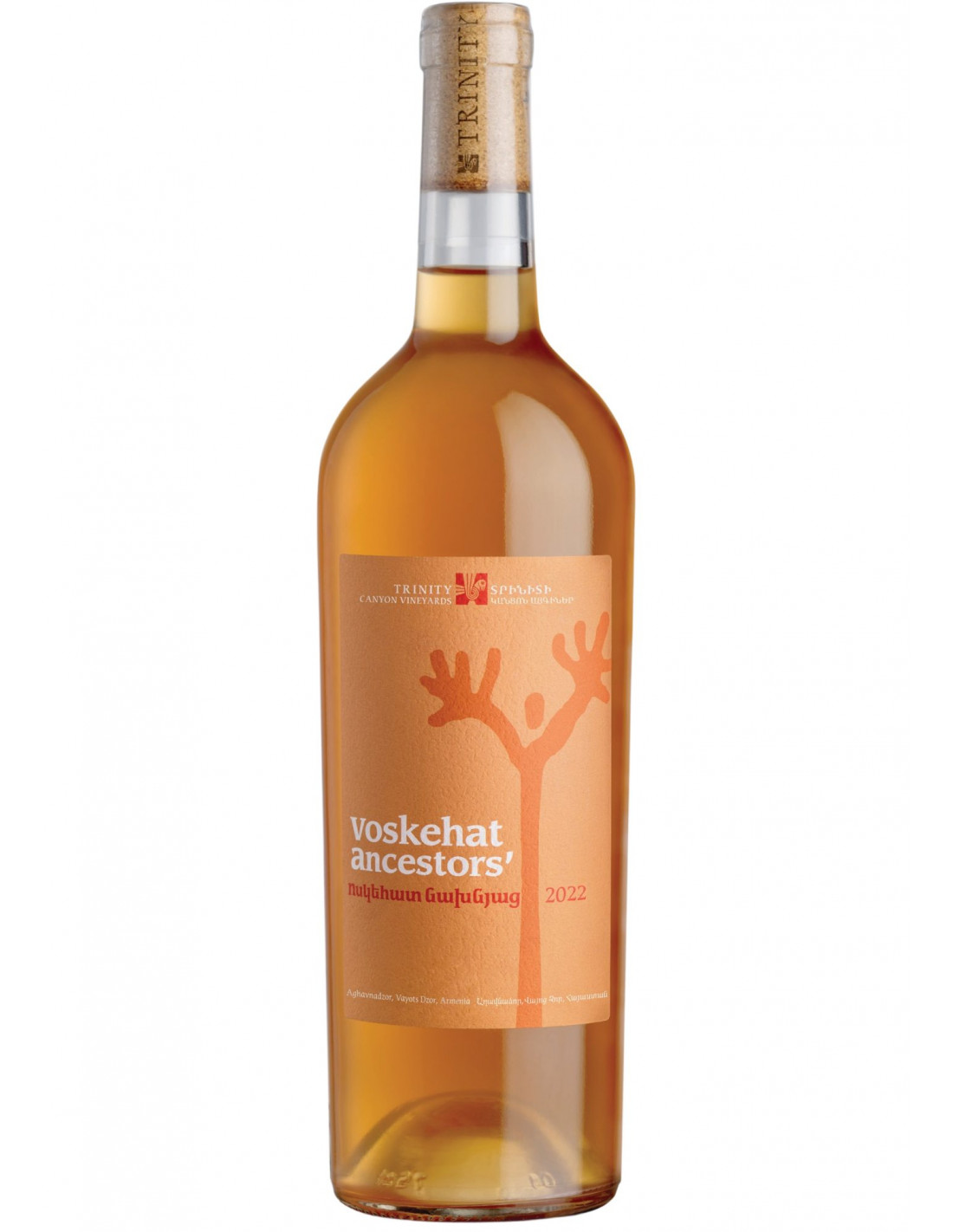 Voskehat Ancestors' ist ein trockener, natürlicher Orangewein aus der autochthonen Rebsorte Voskehat, gewachsen auf vulkanischen Böden in 1450 m Höhe. Ohne zugesetzte Sulfite, vergoren und mazeriert in armenischen Tonamphoren (Karas).