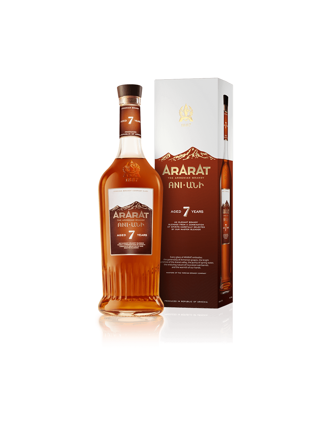 L'ARARAT Ani 7 Anni incarna sia l'eleganza del nome femminile Ani sia la grandezza dell'antica città di Ani, un potente simbolo della civiltà armena. Questo brandy è un vero omaggio alla storia e alle tradizioni dell'Armenia, con radici che risalgono a secoli fa nella patria del brandy armeno. Abbiamo accuratamente selezionato i distillati di brandy per creare questo blend di 7 anni, che offre una combinazione di eleganza e potenza.