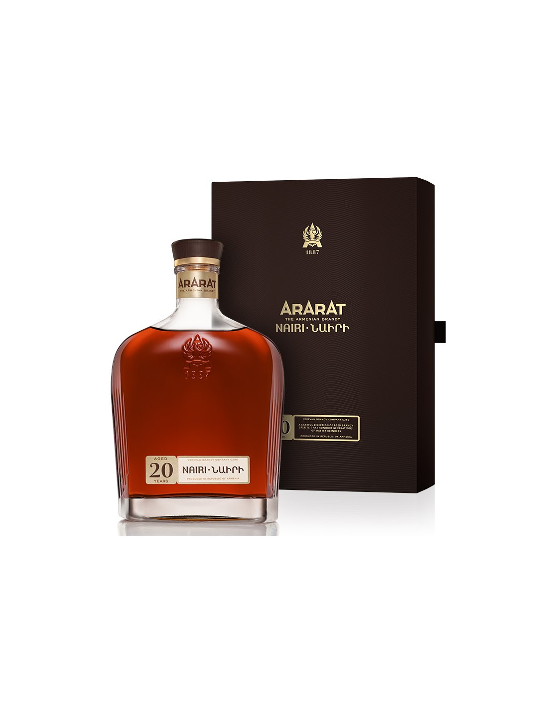 Dal 1967, la Yerevan Brandy Company produce questo lussuoso brandy armeno, mescolando diciotto distillati selezionati con cura, il più vecchio dei quali è invecchiato per oltre 55 anni. Questa combinazione conferisce ad ARARAT "Nairi" una texture setosa e armoniosa, con un finale morbido e persistente che si svela ad ogni sorso. Il suo retrogusto lungo e ricco lo rende un vero piacere per i conoscitori.