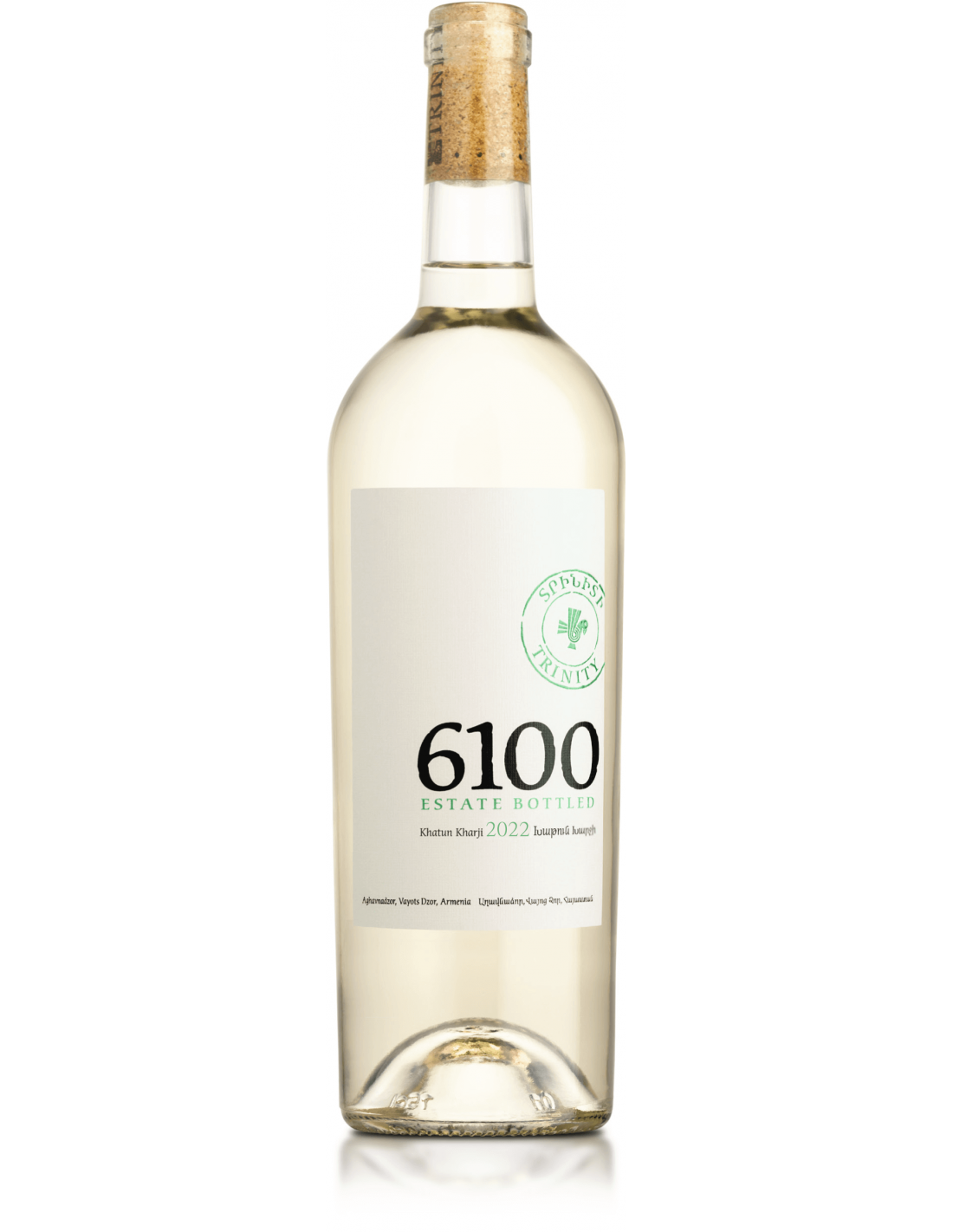 Maak kennis met de Trinity 6100 Khatun Kharji, een droge witte wijn gemaakt van 100% Khatun Kharji druiven, een oude en resistente variëteit afkomstig uit de regio Vayots Dzor in Armenië. Gekweekt in de prestigieuze wijngaarden van Aghavnadzor, weerspiegelt deze wijn het unieke vulkanische terroir van de regio, waar het hoge zand- en grindgehalte, gecombineerd met 250 zonovergoten dagen per jaar en een wijngaardhoogte van 1300 meter, ideale omstandigheden biedt voor het maken van deze uitzonderlijke witte wijn.
