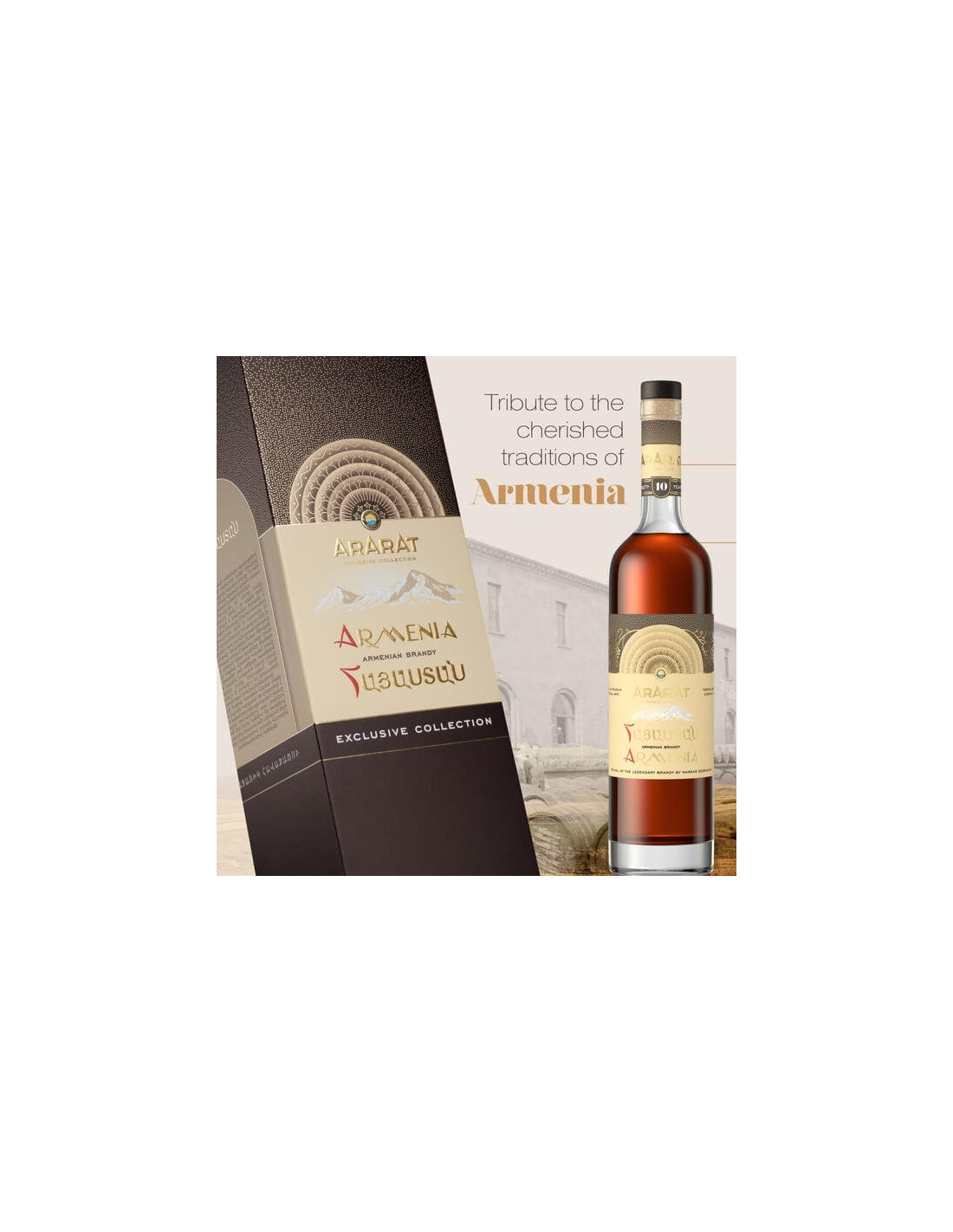 Ararat is een echte Armeense brandewijn, geproduceerd met veel eerbied voor de tradities en volgens hoge kwaliteitsnormen, het resultaat van een continu streven naar uitmuntendheid sinds 1887. De Ararat-brandewijn is de belichaming van de authentieke combinatie van menselijk talent en de gulle natuur. Hij wordt uitsluitend gemaakt van plaatselijke gekweekte Armeense druiven, uitgaande van de dunste fractie en gerijpt in eeuwenoude Kaukasische eiken vaten. Het is een echte met de hand gemaakte drank, de kroon op hey werk van honderden geestdriftige vaklui van de Yerevan Brandy Company.