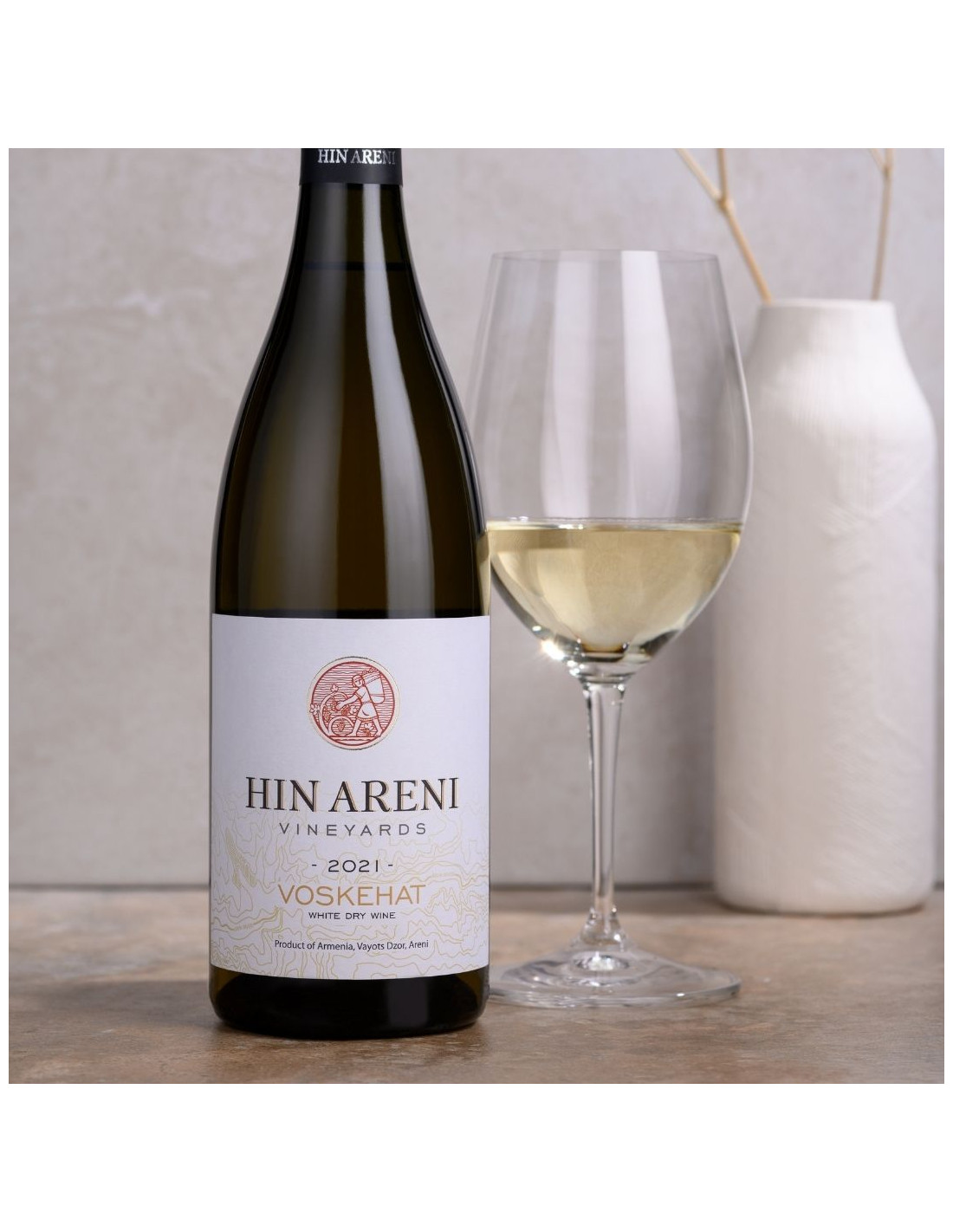 Het domein Hin Areni is gelegen in het dorp Areni, een dorp met een eeuwenoude geschiedenis in vinificatie. De grot van Areni bevat de oudste sporen van vinificatie ter wereld (-6000 jaar). We kweken onze wijnstokken op een paar honderd meter van de grot waar ze 6000 jaar geleden wijn maakte. Onze twee eeuwenoude druivensoorten zijn Voskéhat blanc en l’Areni Noir, ze werden nooit geënt. De wijngaard bevindt zich op een hoogte van 1250 meter en dankzij het klimaat en zijn afzondering van de wereld heeft hij nooit phylloxera gekend. In onze wijnkelder hebben we deze historische tradities gecombineerd met de meer moderne infrastructuur voor vinificatie.